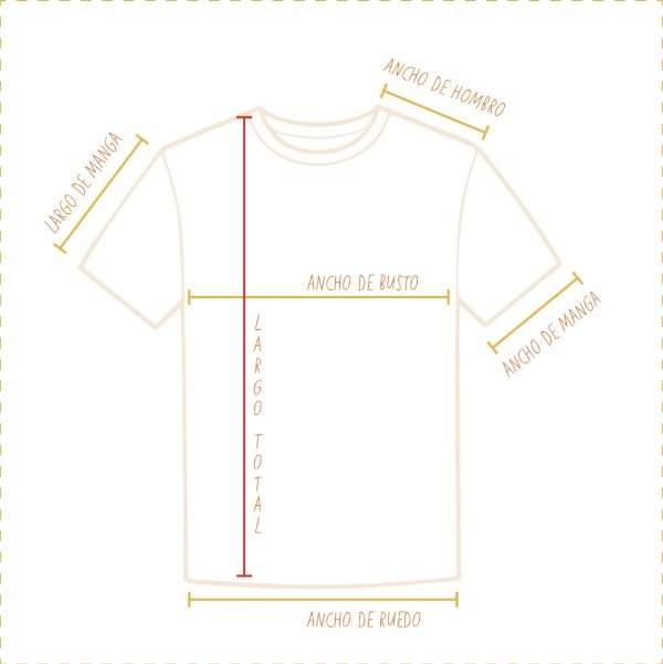 Recordá que la mejor manera de saber cual es tu talle, es comparar las medidas que describo más abajo con las medidas de una remera tuya.