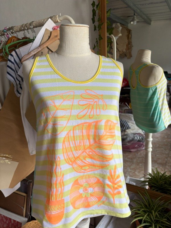 MUSCULOSA rayada amarilla talle M. Tiene una pequeña mancha en el frente.