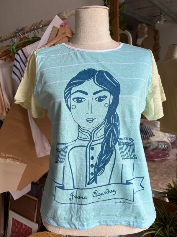 REMERA JUANA RAYAS CELESTES TALLE S.