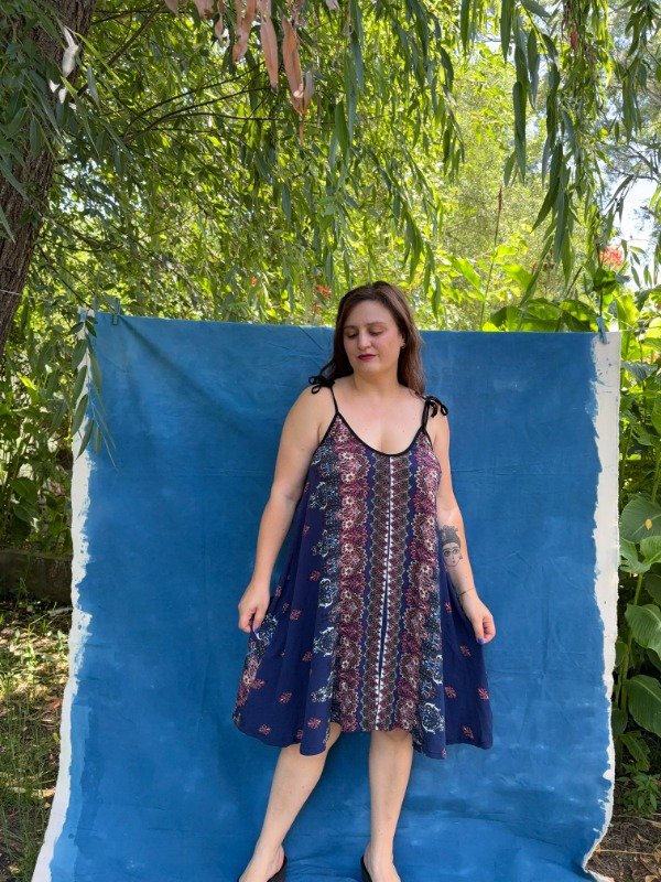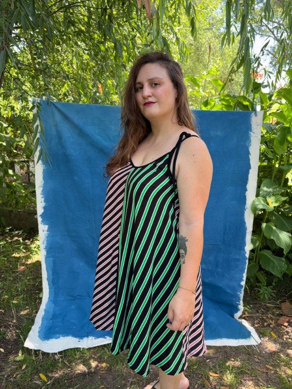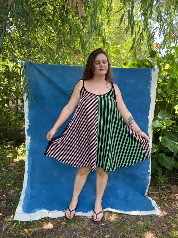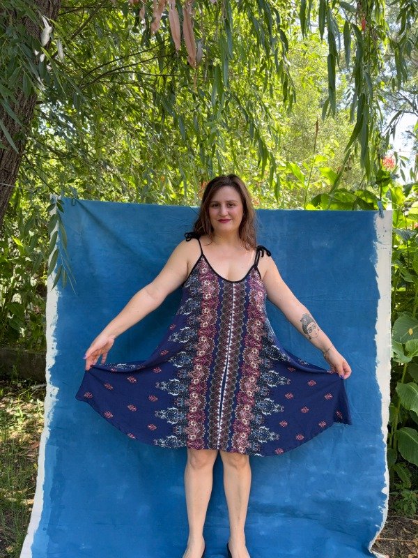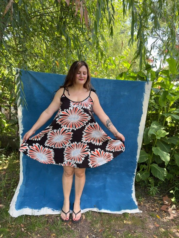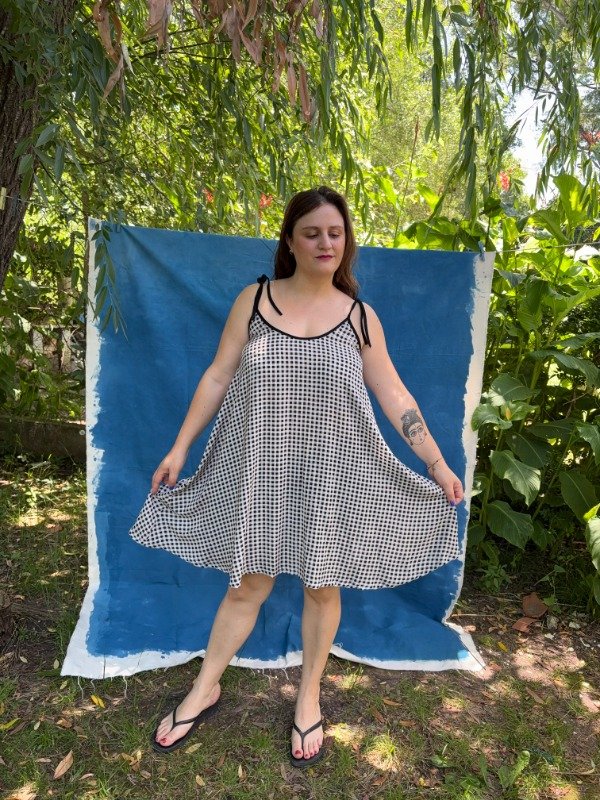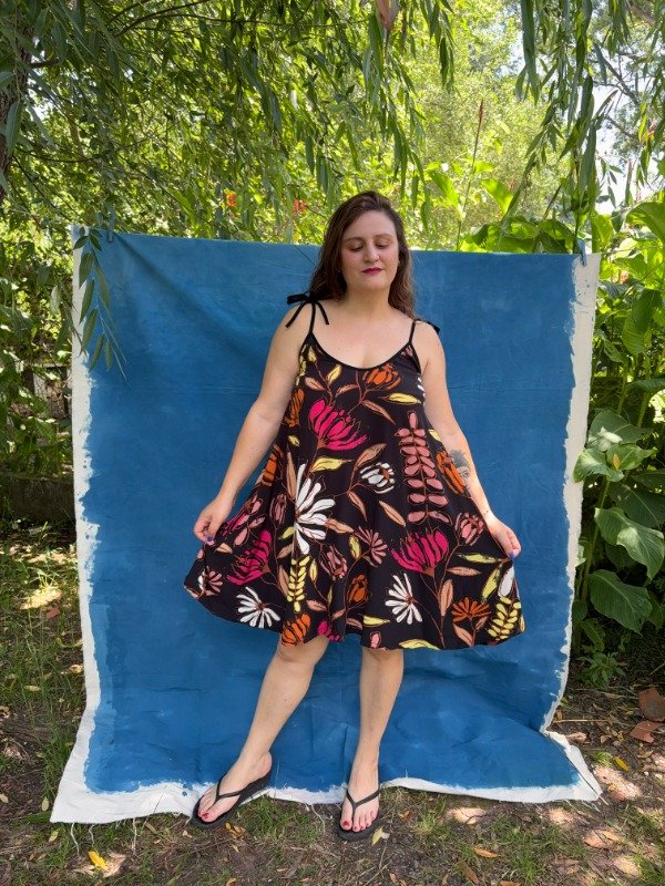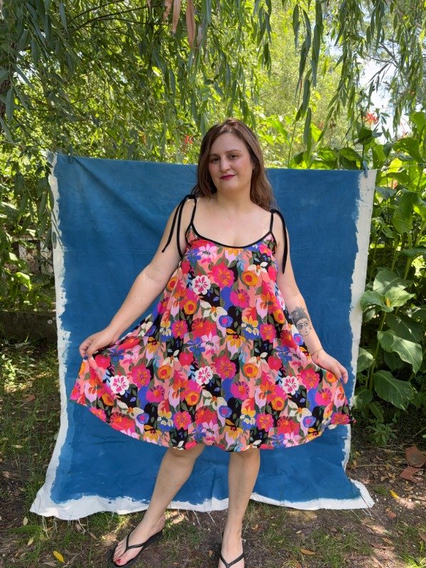 Solero de fibrana estampada y pre-lavada ( no se achica porque ya le hice el primer lavado yo a la tela antes de cortar el vestido) Tiene breteles regulables color negro, y un vuelo encantador. Yo que estoy en las fotos mido 1,64, tengo 105 cm de busto, 85 cm de cintura y 105 de cadera. Cada vestido está cortado a mano y pensado para estar fresquita en el verano con un modelo cómodo, de calidad y de industria nacional :) Todo lo que necesitas para combatir el calor!!!