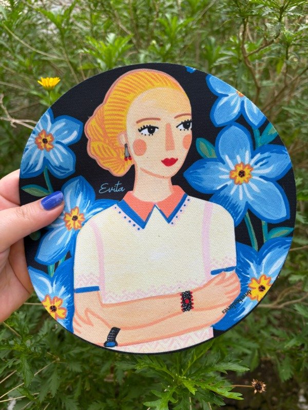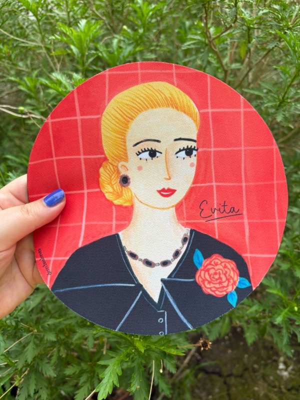 Pad para mouse sublimado con ilustraciones que yo misma pinté inspirada en Evita. Si pasas mil horas en la compu y querés ponerle un poco de color y pasión a tu lugar de trabajo, este pad es justo lo que buscabas. Unico, original y lleno de conciencia social :)